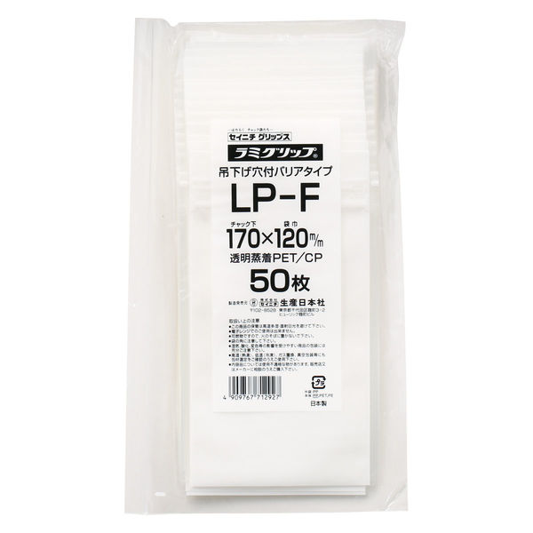 生産日本社 ラミグリップ 平袋 吊り下げ穴付きバリアタイプ 白べた印刷(表面窓付き) LP-F 1袋(50枚入)