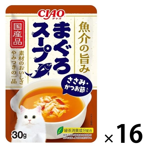 いなば CIAO チャオ まぐろスープ ささみ・かつお節入り 国産 30g 1セット(1袋×16)猫用