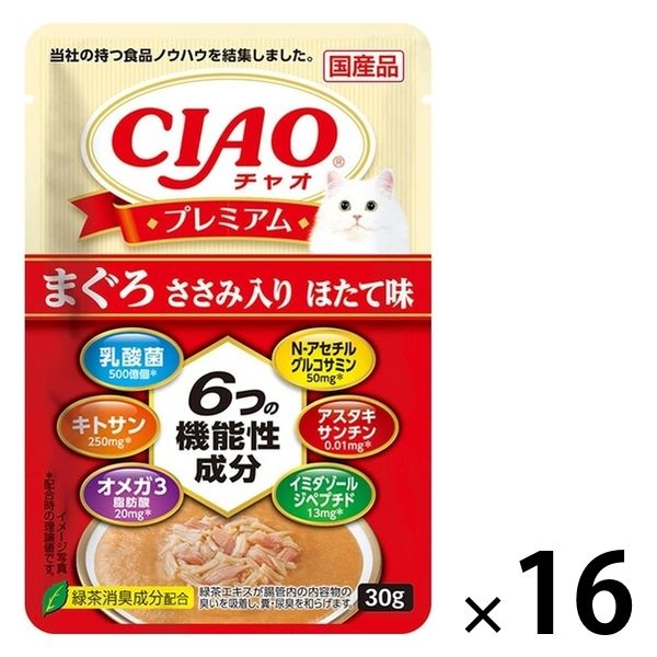 いなば CIAO チャオ プレミアム まぐろ ささみ入り ほたて味 国産 30g 1セット(1袋×16)キャットフード