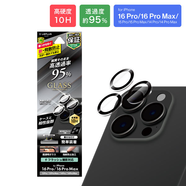 iPhone 16 Pro/16 Pro Max/15 Pro/15 Pro Max レンズ保護ガラスフィルム 高透過 約95%(直送品)