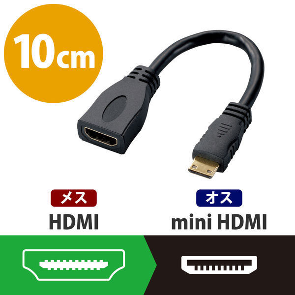 | 商品の特徴 | HDMI端子(タイプA)をHDMI-Mini端子(タイプC)に変換するHDMI変換ケーブルです。HDMI-Mini端子(タイプC)を持つタブレットやデジタルビデオカメラなどをテレビに接続することができます。サビなどに強く信号劣化を抑える金メッキプラグを採用しています。外部ノイズの干渉から信号を保護する3重シールドケーブルを採用しています。ケーブルの長さは10cmです。EUの「RoHS指令(電気・電子機器に対する特定有害物質の使用制限)」に準拠(10物質)しています。 | ||