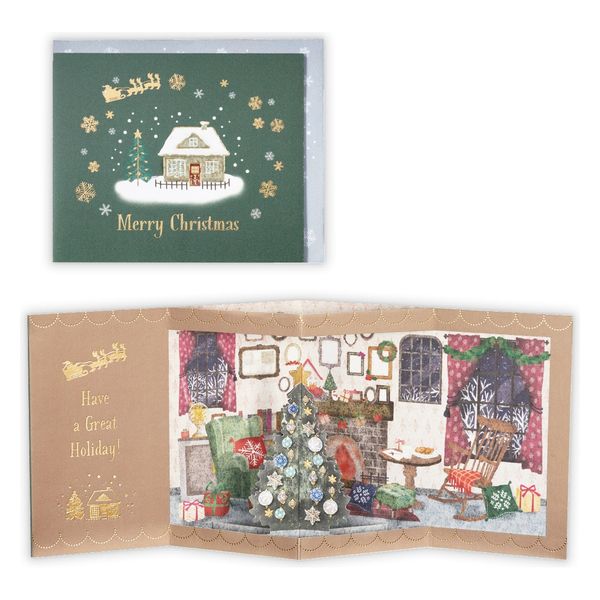 商品の特徴 クリスマスのおうちの風景を切り取った心温まる立体カードです。ところどころにストーリーを感じさせるモチーフをちりばめました。細部までじっくりお楽しみいただけます。 ●カード:108×130mm●封筒:116×140mm●箔加工●立てて飾れます