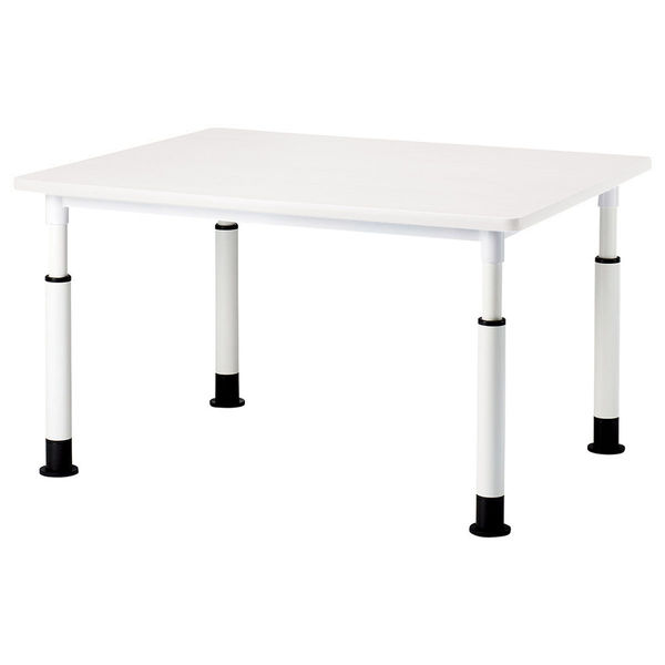 - 天板/表面材:メラミン化粧板(抗菌) エッジ:ソフトエッジ巻 28mm厚 脚部/スチールパイプ(φ60.5)焼付塗装(ホワイト)アジャスター付