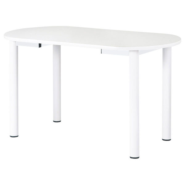 - 天板/表面材:メラミン化粧板(抗菌) エッジ:ソフトエッジ巻 29mm厚 脚部/スチールパイプ(Φ76.3) 焼付塗装(ホワイト) アジャスター付