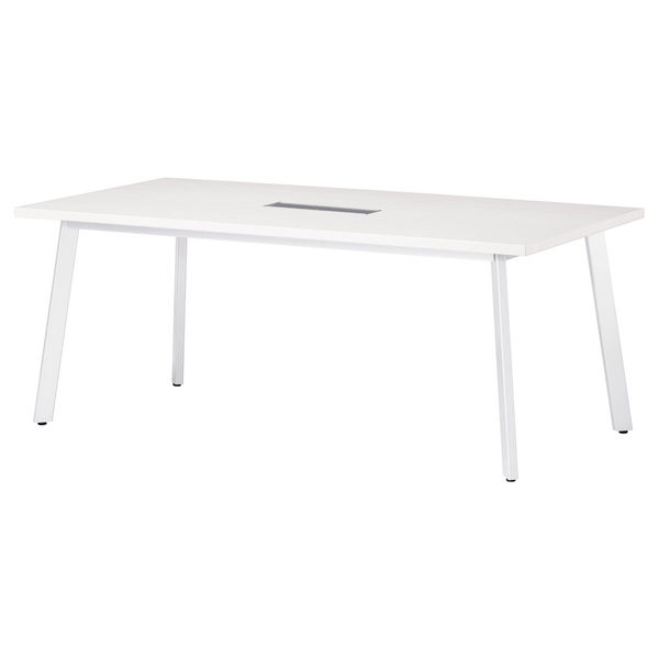 | 商品の特徴 | ●解放感と安定感のある八の字脚です。●ワイヤリング機能付きで、カバーを外し電源タップやケーブル等を収納できる為、PCやプロジェクターを使った会議にも最適です。●天板は耐水・耐熱性に優れた高圧メラミン化粧板で傷が付きにくくなっております。●脚端にはレベル調整用のアジャスターが付いています。●国産テーブルの為、安心設計です。●抗菌 | ||