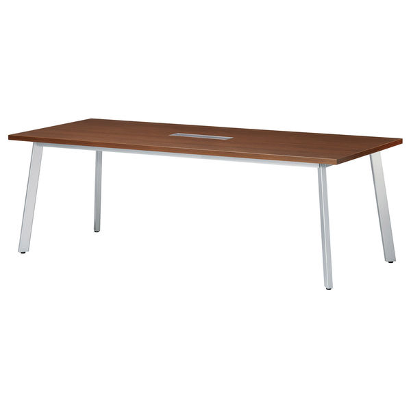 | 商品の特徴 | ●解放感と安定感のある八の字脚です。●ワイヤリング機能付きで、カバーを外し電源タップやケーブル等を収納できる為、PCやプロジェクターを使った会議にも最適です。●天板は耐水・耐熱性に優れた高圧メラミン化粧板で傷が付きにくくなっております。●脚端にはレベル調整用のアジャスターが付いています。●国産テーブルの為、安心設計です。●抗菌●指紋レス:指紋などの汚れが目立ちにくいメラミン化粧板です。 | ||