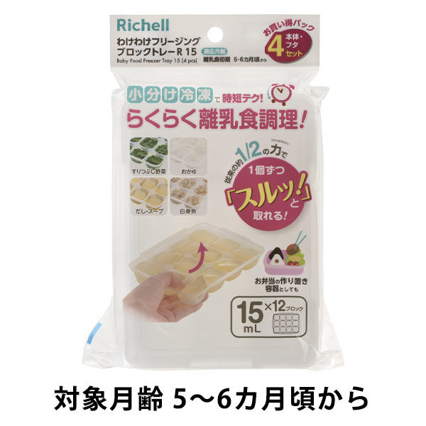 【5~6ヵ月頃から】わけわけフリージング ブロックトレーR 15ml×12ブロック 4セット(本体・フタ)1個 リッチェル