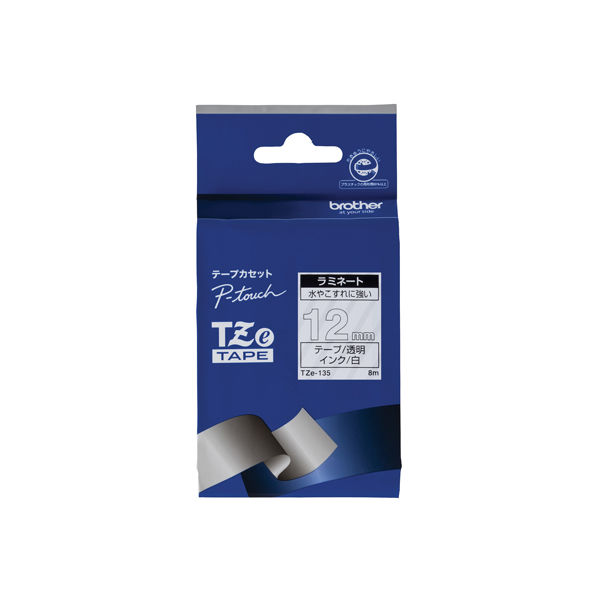 本商品:ブラザー ピータッチ テープ 幅12mm 透明ラベル(白文字) TZe-135 1個 |