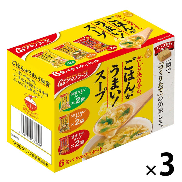 | 原材料 ※お手元に届いた商品を必ずご確認ください | ★特製たまごスープ:風味調味料、還元水あめ、でん粉、食塩、ゆずこしょう、焼きあご・あじ煮干粉末、ホタテエキス、たんぱく加水分解物、かつお節粉末、香辛料、酵母エキスパウダー、こんぶ粉末、具(液全卵(国内製造)、みずな、ゆず果皮)/調味料(アミノ酸等)、酸化防止剤(ビタミンE)、アナトー色素、(一部に小麦・卵・乳成分・さば・大豆を含む)★スパイスカレースープ:カレー粉、野菜ペースト、ガラスープパウダー、食塩、砂糖、トマトペースト、カレールウ、チキンエキス、しょうゆ、デキストリン、でん粉、植物油脂、チキンオイル、かつお節粉末、香辛料、具(揚げなす(ベトナム製造)、こまつな、乾燥パセリ)/調味料(アミノ酸等)、増粘剤(タマリンドガム)、カラメル色素、酸化防止剤(ビタミンE)、香料、(一部に小麦・乳成分・ごま・大豆・鶏肉・豚肉を含む)★旨辛チゲスープ:コチュジャン、還元水あめ、魚醤、食塩、魚介エキスパウダー、でん粉、ポークエキスパウダー、あさりエキスパウダー、たん白自己消化物、ビーフエキスパウダー、焙煎唐辛子末、ガーリックペースト、酵母エキスパウダー、ジンジャーペースト、具(液全卵(国内製造)、にら)/調味料(アミノ酸等)、パプリカ色素、酸化防止剤(ビタミンE)、(一部にえび・卵・いか・牛肉・大豆・豚肉を含む) | 表示すべきアレルギー項目 ※お手元に届いた商品を必ずご確認ください | ★特製たまご:小麦、卵、乳、さば、大豆★スパイスカレー:小麦、乳、ごま、大豆、鶏肉、豚肉★旨辛チゲ:エビ、卵、いか、牛肉、大豆、豚肉 |
