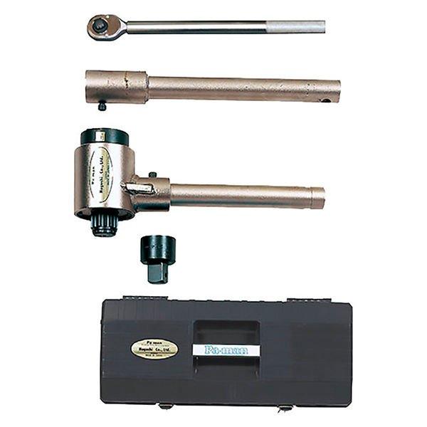 - ●出力:5.3kN・m(545kgf-m) No.5凸スプライン ●入力:373N・m(38kgf-m迄) 12.7mm凹角 ●倍率:18:1 ●サイズ:長さ372×巾150×高さ90mm ●付属品:ハンドル、延長パイプ、専用ケース、No.5凸スプライン(25.4mm角変換アダプター) ●自重:10.8kg