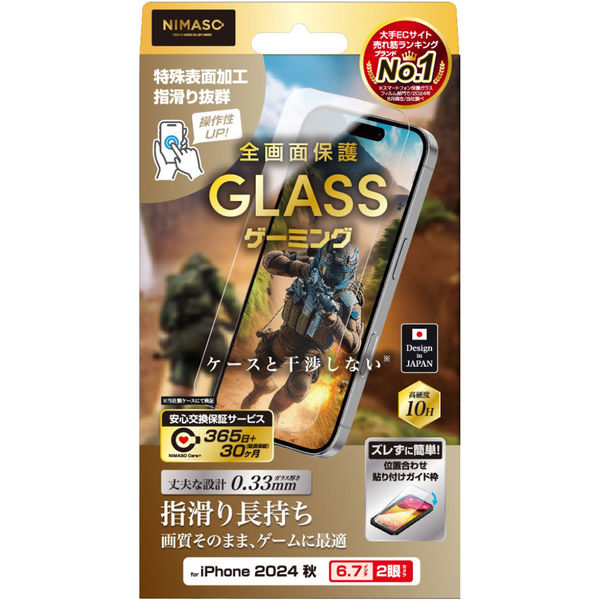 NIMASO iPhone 2024 2眼 6.7inch ガラスフィルム ゲーミング特化 光沢 全画面保護 NI-G1-16BEK1(直送品)