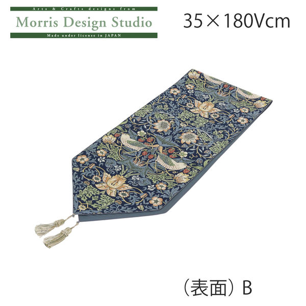 川島織物セルコン モリスデザインスタジオ いちご泥棒 テーブルランナー 350×1800mm ブルー HN1711_91B 1枚(直送品)