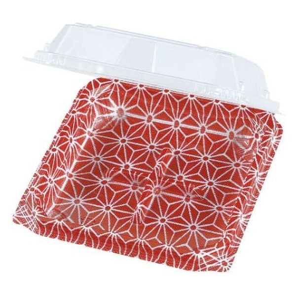 | 商品の特徴 | 和菓子容器。閉めやすさ、開けやすさ、安全性にこだわりました。季節や行事に合わせた柄で売場を華やかに。和菓子4個用。 | ||