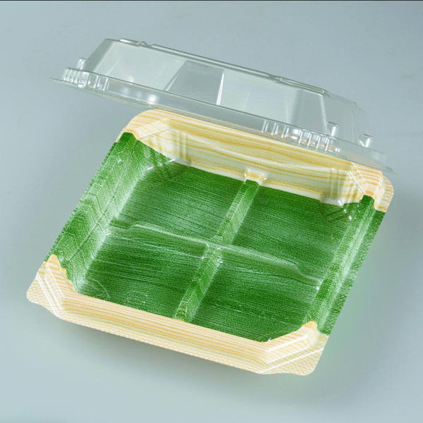 | 商品の特徴 | 和菓子容器。閉めやすさ、開けやすさ、安全性にこだわりました。季節や行事に合わせた柄で売場を華やかに。和菓子4個用。 | ||