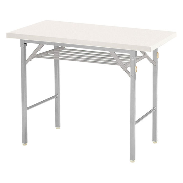 アイリスチトセ 折りたたみテーブル 棚付き アイボリー 幅1800×奥行450×高さ700mm 1台 オリジナル