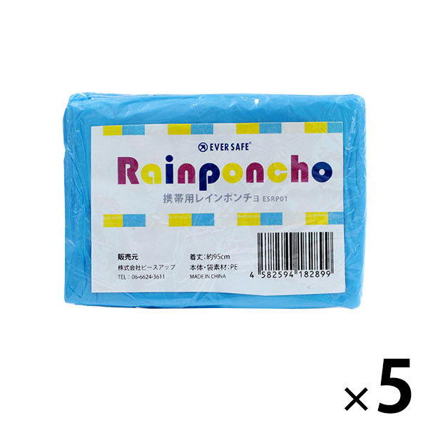 携帯用レインポンチョ 5個 レインコート レインスーツ 雨具 防災グッズ かっぱ 合羽 男女兼用(直送品)
