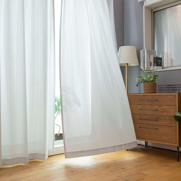 | 商品の特徴 | スリットされたアルミ蒸着フィルムをタテ方向に挿入して編み上げた高性能カーテン。アルミフィルムの効果で赤外線を反射することで、レースカーテンでありながら厚地カーテン並の断熱効果と保温性を実現しました。よく見るとさりげなくドットのあるデザインです。窓に掛けてみるとイメージがガラリと変化。日差しが入れば入るほどテカリが消え、白色が強くなってより明るい雰囲気に。生地感が厚めでザラリとしているのが特徴です。事務所や工場の暑さ対策、寒さ対策にピッタリ。西日対策、UVカット、遮熱、保温効果。節電対策、エコファイン | ||