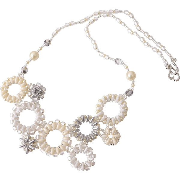 | 商品の特徴 | チェコメイトを使用したアクセサリーキットです。 初心者の方にも挑戦しやすいデザインを集めました。 見た目よりも簡単に存在感のあるアクセサリーが楽しめます。 セット内容:チェコメイトビーズ、ビーズ、エアーパール、針、糸、クラスプ 用意するもの:ものさし、はさみ、木工用ボンド 出来上がりサイズ:首まわり約52cm 難易度:初級~中級者向け 注意事項:ビーズは強い衝撃によって、割れる場合があるので、取扱いに注意ください。金具パーツなどで肌に異常を感じた場合は、ご使用を中止し専門医にご相談ください。 | ||