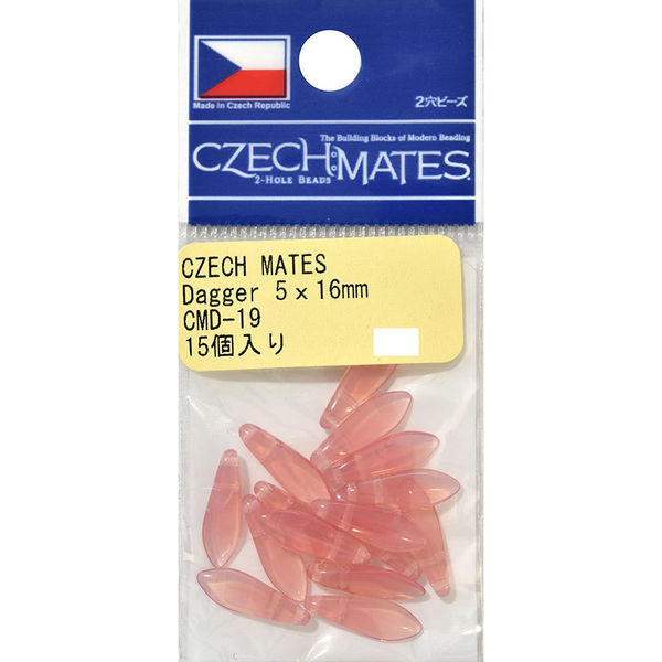 - 「チェコメイト」とは…2穴のビーズで、Tile(タイル)、Dagger(ダガー)、Brick(ブリック)、Lentil(レンティル)、Triangle(トライアングル)の5つの形があります。 5種類のビーズ2つ穴は、すべて同じ幅なので組合わせやすく立体的な作品が制作でき、1つ穴と違った作品が出来上がります。 チェコメイトは、シードビーズとの相性も良く、組合わせて使用することで、繊細さが増します。 またチェコメイトは、ビーズも大きいので扱い易く、丸カン、チェーンを使用することで、簡単なアクセサリーでもご使用頂ける次世代の新しいビーズです。 存在感のフォルムと色展開が、アクセサリー作りに最適です。 ・サイズ:約5×16mm ・色品番:CMD-19 ・容量:15ヶ ・素材:ガラス
