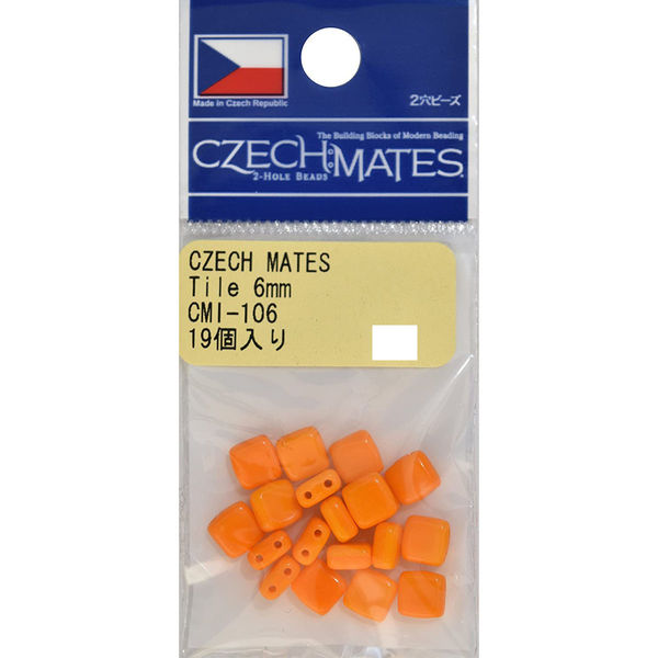 - 「チェコメイト」とは…2穴のビーズで、Tile(タイル)、Dagger(ダガー)、Brick(ブリック)、Lentil(レンティル)、Triangle(トライアングル)の5つの形があります。 5種類のビーズ2つ穴は、すべて同じ幅なので組合わせやすく立体的な作品が制作でき、1つ穴と違った作品が出来上がります。 チェコメイトは、シードビーズとの相性も良く、組合わせて使用することで、繊細さが増します。 またチェコメイトは、ビーズも大きいので扱い易く、丸カン、チェーンを使用することで、簡単なアクセサリーでもご使用頂ける次世代の新しいビーズです。 存在感のフォルムと色展開が、アクセサリー作りに最適です。 ・サイズ:約6mm ・色品番:CMI-106 ・容量:19ヶ ・素材:ガラス