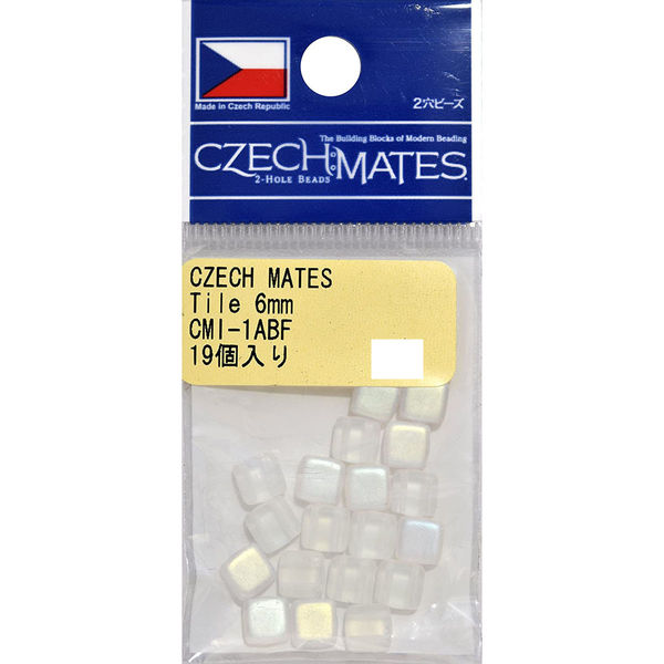「チェコメイト」とは…2穴のビーズで、Tile(タイル)、Dagger(ダガー)、Brick(ブリック)、Lentil(レンティル)、Triangle(トライアングル)の5つの形があります。 5種類のビーズ2つ穴は、すべて同じ幅なので組合わせやすく立体的な作品が制作でき、1つ穴と違った作品が出来上がります。 チェコメイトは、シードビーズとの相性も良く、組合わせて使用することで、繊細さが増します。 またチェコメイトは、ビーズも大きいので扱い易く、丸カン、チェーンを使用することで、簡単なアクセサリーでもご使用頂ける次世代の新しいビーズです。 存在感のフォルムと色展開が、アクセサリー作りに最適です。 ・サイズ:約6mm ・色品番:CMI-1ABF ・容量:19ヶ ・素材:ガラス