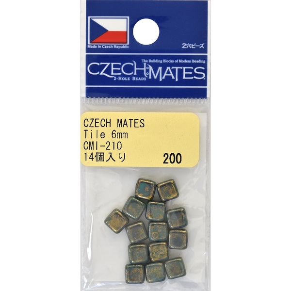 - 「チェコメイト」とは…2穴のビーズで、Tile(タイル)、Dagger(ダガー)、Brick(ブリック)、Lentil(レンティル)、Triangle(トライアングル)の5つの形があります。 5種類のビーズ2つ穴は、すべて同じ幅なので組合わせやすく立体的な作品が制作でき、1つ穴と違った作品が出来上がります。 チェコメイトは、シードビーズとの相性も良く、組合わせて使用することで、繊細さが増します。 またチェコメイトは、ビーズも大きいので扱い易く、丸カン、チェーンを使用することで、簡単なアクセサリーでもご使用頂ける次世代の新しいビーズです。 存在感のフォルムと色展開が、アクセサリー作りに最適です。 ・サイズ:約6mm ・色品番:CMI-210 ・容量:19ヶ ・素材:ガラス