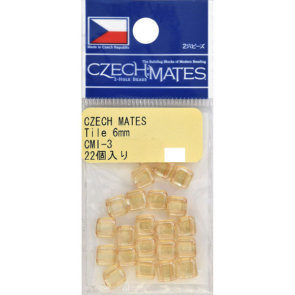 - 「チェコメイト」とは…2穴のビーズで、Tile(タイル)、Dagger(ダガー)、Brick(ブリック)、Lentil(レンティル)、Triangle(トライアングル)の5つの形があります。 5種類のビーズ2つ穴は、すべて同じ幅なので組合わせやすく立体的な作品が制作でき、1つ穴と違った作品が出来上がります。 チェコメイトは、シードビーズとの相性も良く、組合わせて使用することで、繊細さが増します。 またチェコメイトは、ビーズも大きいので扱い易く、丸カン、チェーンを使用することで、簡単なアクセサリーでもご使用頂ける次世代の新しいビーズです。 存在感のフォルムと色展開が、アクセサリー作りに最適です。 ・サイズ:約6mm ・色品番:CMI-3 ・容量:22ヶ ・素材:ガラス