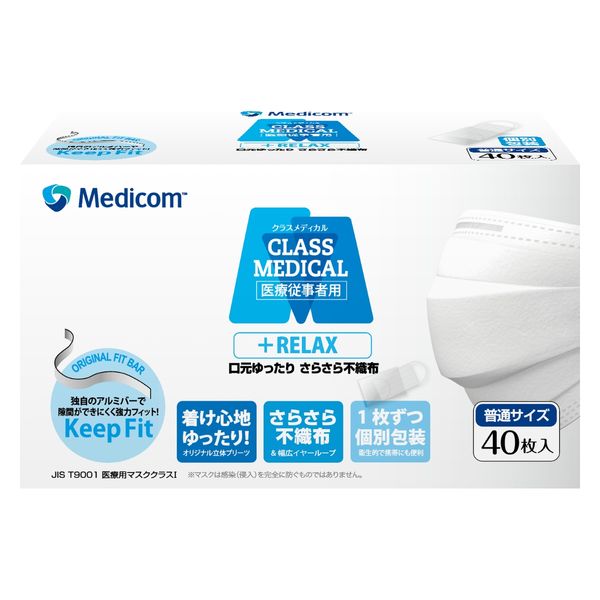 メディコムジャパン クラスメディカル リラックス ふつう 個包装 JMK219114 サージカル プリーツ 不織布 使い捨て 3層式 1箱(40枚入)