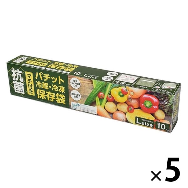 フリーザーバッグ マチ付き パチット 保存袋 冷蔵・冷凍 電子レンジ解凍可 抗菌 Wジッパー式 L 1セット(1箱(10枚入×5)ファイン