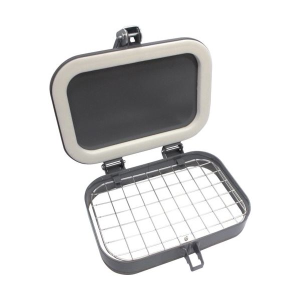 | 原産国 | 日本 | 材質/仕上 | 本体:SS製 枠t3.2カバーt2.3・レバー:SS製 三価クロムメッキ仕上げ・パッキン:BSFパッキン金網:電解研磨(網目30mm)・カバーにパッキンズレ止付き |