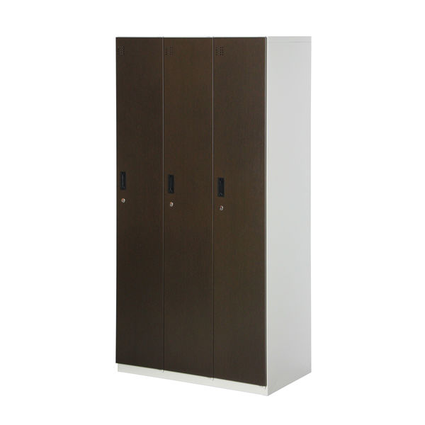 スマイル 木目調スチールロッカー 3連3人用 シリンダー錠 ダークブラウン/ホワイト 幅900×奥行515×高さ1790mm 1台(取寄品)