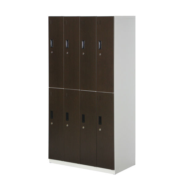 スマイル 木目調スチールロッカー 4連2段8人用 シリンダー錠 ダークブラウン/ホワイト 幅900×奥行515×高さ1790mm 1台(取寄品)