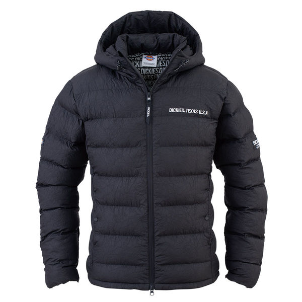 表地の上品なシワ感とボリュームある中綿と、独立した内衿によるバツグンな保温性が特徴のDickiesファイバーダウンフーディージャケット
