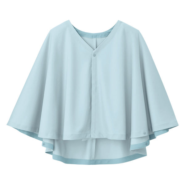 | 商品の特徴 | デザイン性のある立ち衿に加え、胸元も見えづらいカッティング。ボタンを留めることで袖口ができ、手さばきが楽になります。肩に掛けているケープは、取り外すと膝掛けとしてもご利用いただける2way仕様です。制電トリコット(ポリエステル100%)は洗濯性に優れ、しわになりにくいトリコット素材です。肌触りが良く、ソフトな風合いが特長です。 | ||