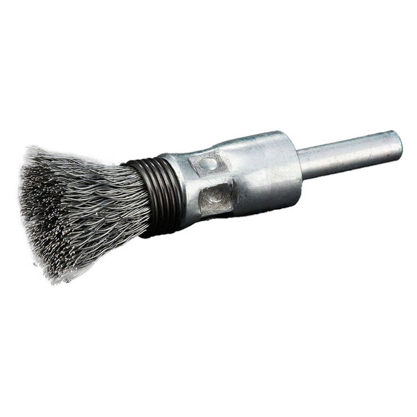 | 商品の特徴 | 部品内面底部、止まり穴等、ホイール・カップ・ベベル型で処理できない狭い箇所に最適です。 コーナー部やL字型箇所の錆落し、溶接後のスケール除去に使用されます。 ピンポイントカシメにより、毛材の抜けを防止しています。 安心・高品質の日本製です。 | ||