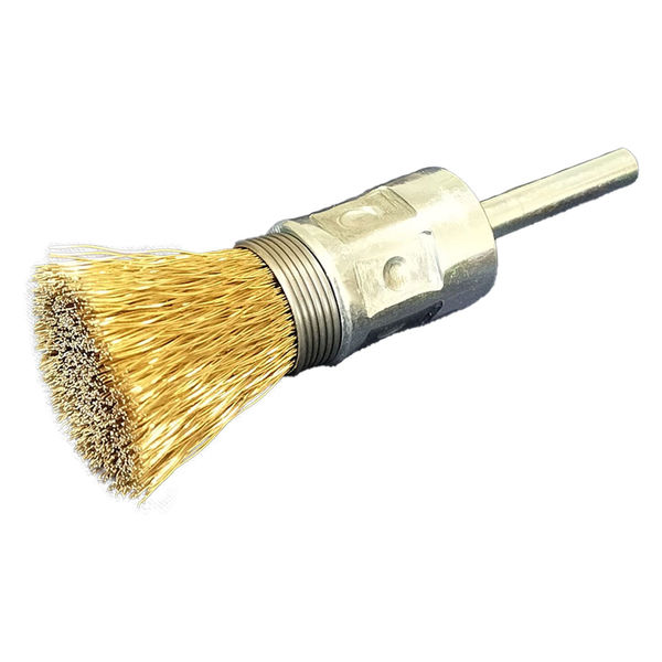 | 商品の特徴 | 部品内面底部、止まり穴等、ホイール・カップ・ベベル型で処理できない狭い箇所に最適です。 コーナー部やL字型箇所の錆落し、溶接後のスケール除去に使用されます。 ピンポイントカシメにより、毛材の抜けを防止しています。 安心・高品質の日本製です。 | ||