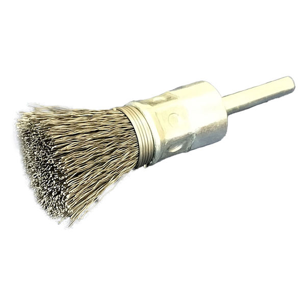 | 商品の特徴 | 部品内面底部、止まり穴等、ホイール・カップ・ベベル型で処理できない狭い箇所に最適です。 コーナー部やL字型箇所の錆落し、溶接後のスケール除去に使用されます。 ピンポイントカシメにより、毛材の抜けを防止しています。 安心・高品質の日本製です。 | ||