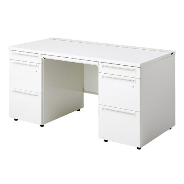 【組立設置込】プラス US-1S 両袖机 幅1400×奥行700×高さ720mm ホワイト UR-147AL-33 WS/W4 1台(直送品)