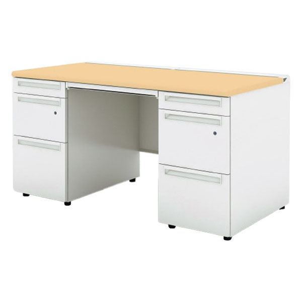 【組立設置込】プラス US-1S 両袖机 幅1400×奥行700×高さ720mm WM×ホワイト UR-147DL-33 WM/W4 1台(直送品)
