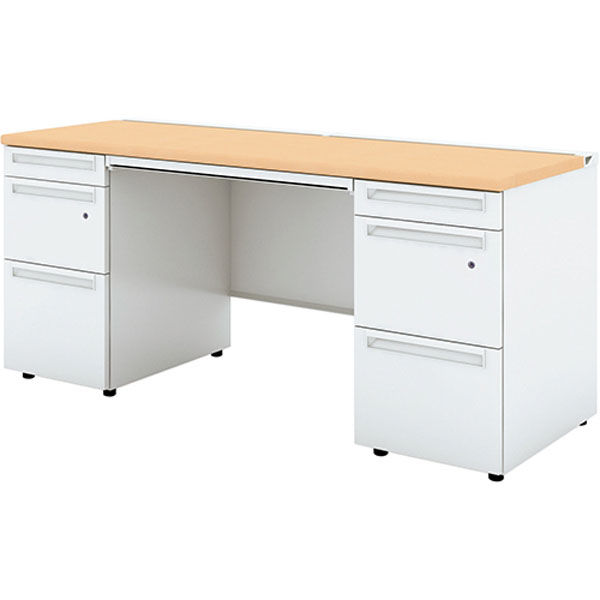【組立設置込】プラス US-1S 両袖机 幅1600×奥行600×高さ720mm WM×ホワイト UR-166D-33 WM/W4 1台(直送品)