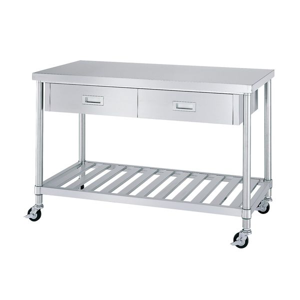 商品の特徴 ●キャスター付ステンレス作業台≪引出付/スノコ棚仕様≫●SUS430 No.4仕上げ●(W)1800×(D)750×(H)800