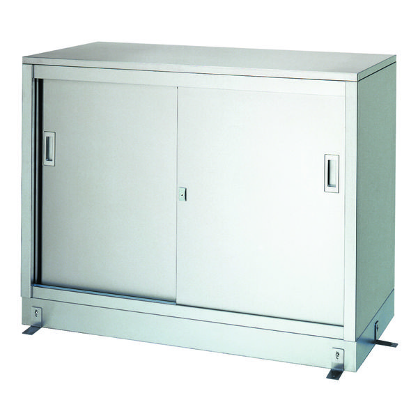 | 商品の特徴 | ●ステンレス保管庫(一段式) ●SUS430 No.4仕上げ ●中棚一段付属(左右二分割) ●(W)1500×(D)450×(H)950 | ||