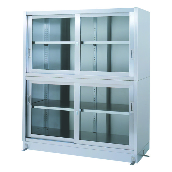 | 商品の特徴 | ●ステンレス保管庫(二段式) ●SUS430 No.4仕上げ ●中棚上下各一段付属(左右二分割) ●(W)1800×(D)600×(H)1750 | ||