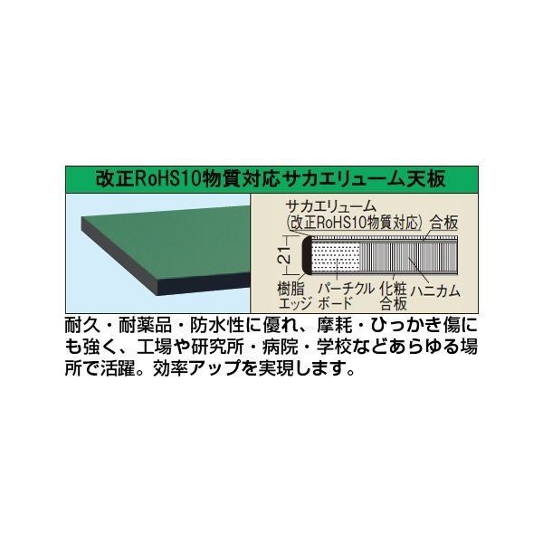 | 天板サイズ | 900×600×21mm | 天板種類 | 改正RoHS指令10物質対応サカエリューム天板 |