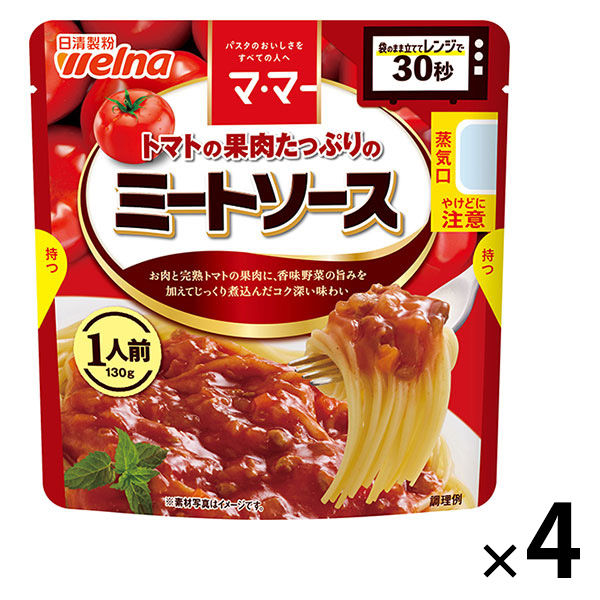 マ・マー トマトの果肉たっぷりのミートソース 1人前 1セット(4個) 日清製粉ウェルナ パスタソース レンジ対応