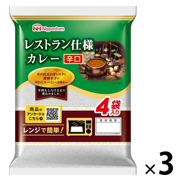 本商品:日本ハム レストラン仕様カレー(辛口) 1セット(4袋入×3パック) |