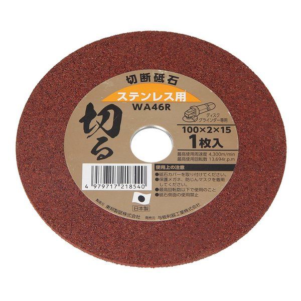 | 最高使用回転速度 | 4,300min | 砥材 | WA(白色アルミナ) |