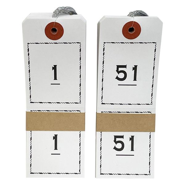 預かり荷物の管理に最適な番号札。ホテルや旅館の手荷物預かりに便利です。柔らかい針金を使用し、1番から100番までセットされた連番荷札です。色別で使い分けください。