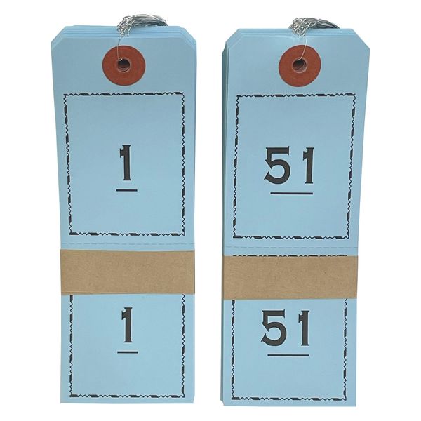 預かり荷物の管理に最適な番号札。ホテルや旅館の手荷物預かりに便利です。柔らかい針金を使用し、1番から100番までセットされた連番荷札です。色別で使い分けください。