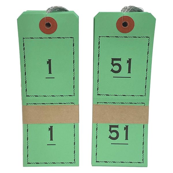 預かり荷物の管理に最適な番号札。ホテルや旅館の手荷物預かりに便利です。柔らかい針金を使用し、1番から100番までセットされた連番荷札です。色別で使い分けください。